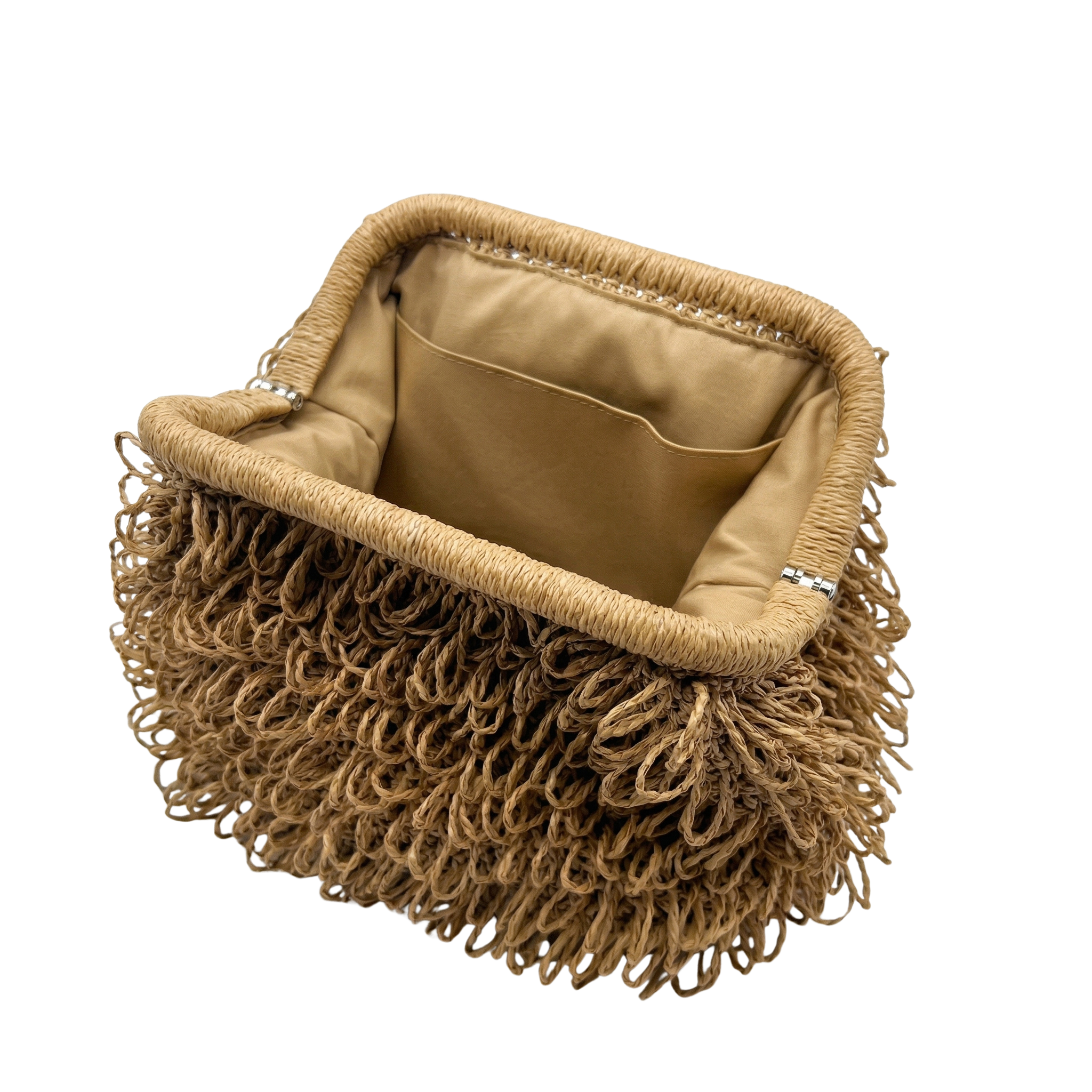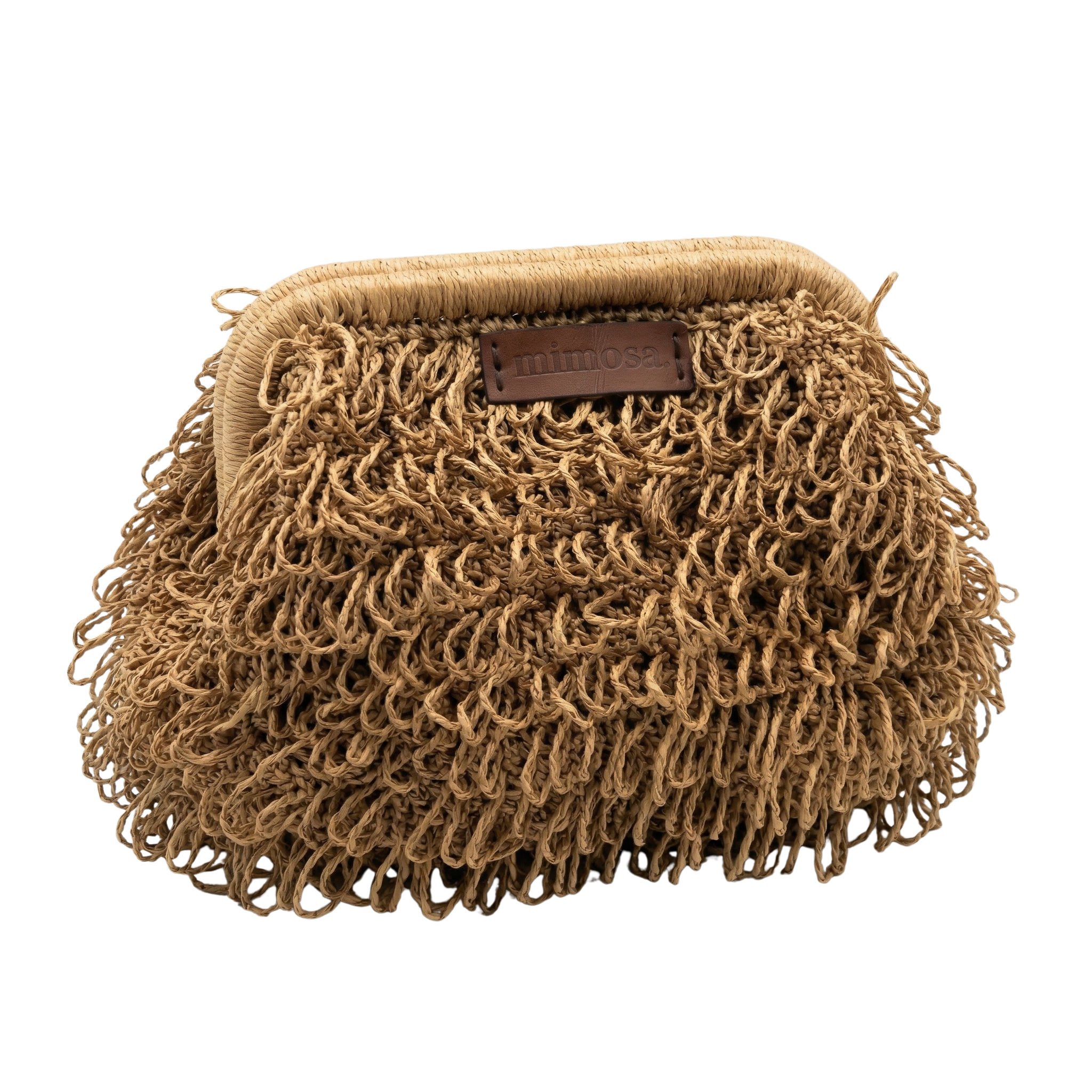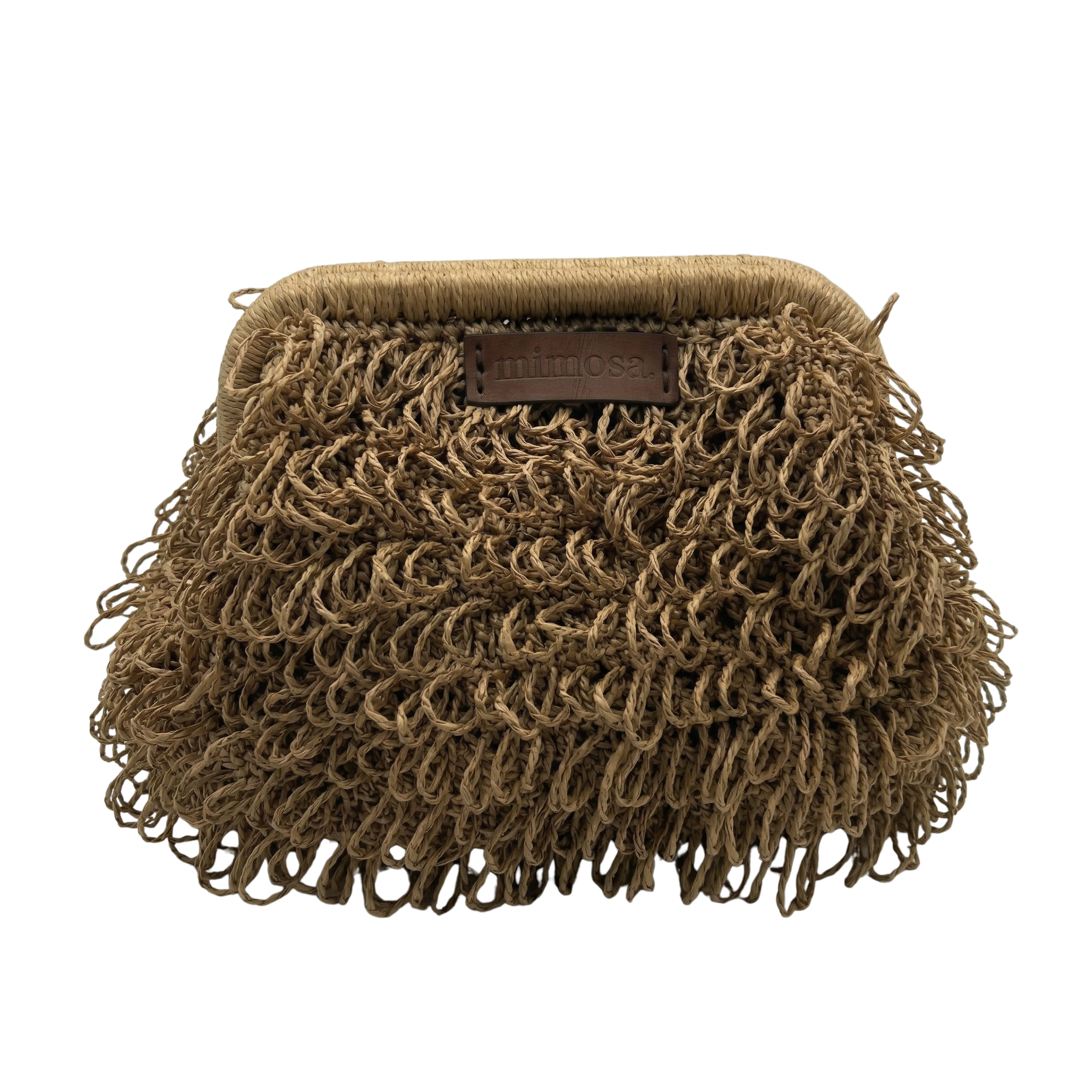 mimosa. tarafından %100 kağıt ip kullanılarak tamamen el işçiliğiyle üretilen bu tasarım çanta, yüksek kaliteli malzemeleri ve zanaatkar dokunuşuyla stilinize zarafet katar. İç tasarımında kullanılan
